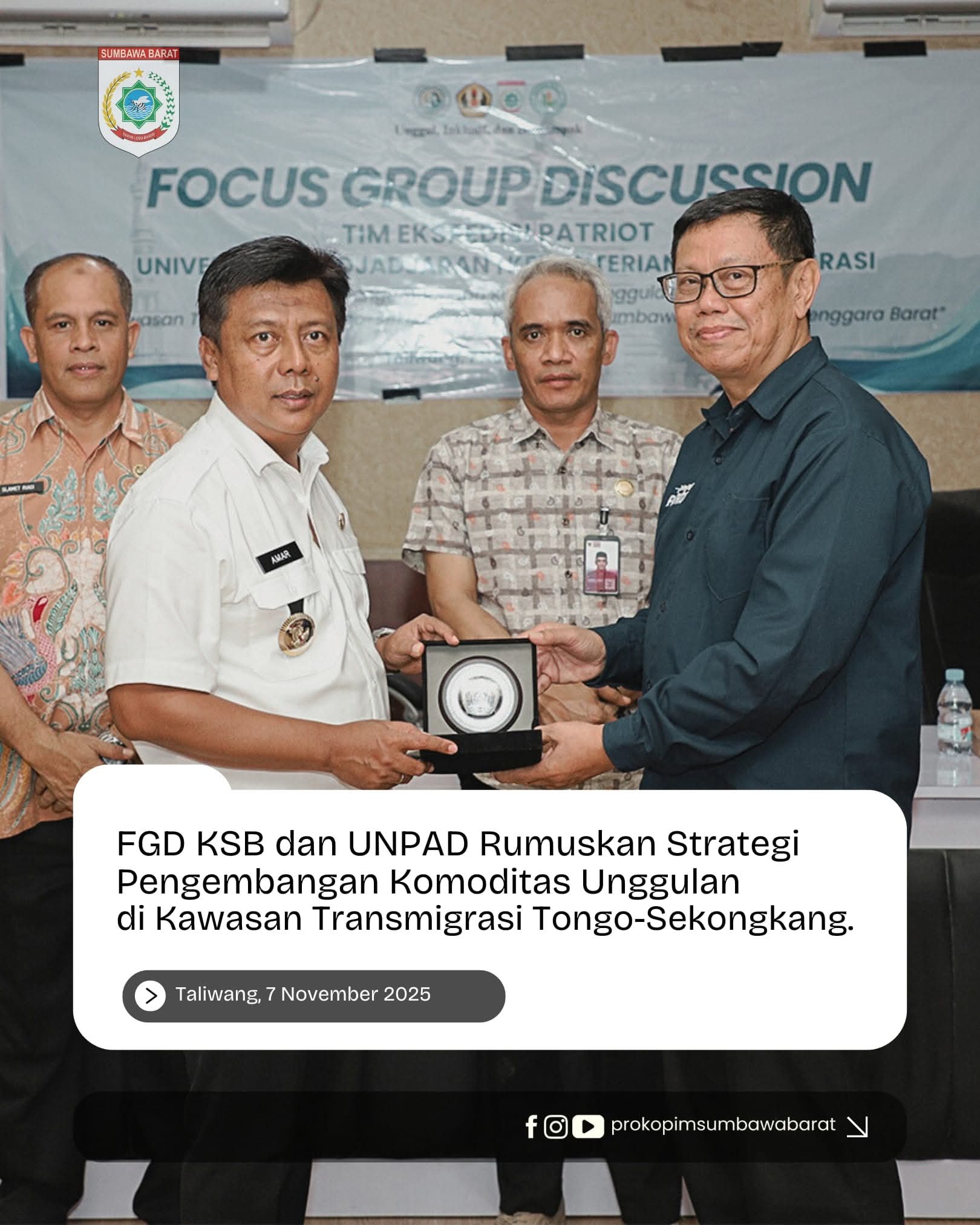 Taliwang KSB, Mediajejakdigital– Pemerintah Kabupaten Sumbawa Barat bersama Universitas Padjadjaran (Unpad) menggelar Focus Group Discussion (FGD) untuk merumuskan strategi pengembangan komoditas unggulan di kawasan transmigrasi Tongo – Sekongkang.