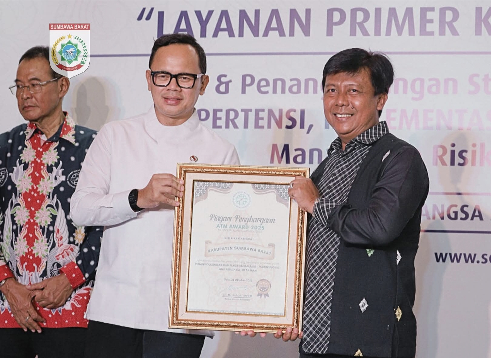 Solo, Mediajejakdigital– Bupati Sumbawa Barat menerima penghargaan Penanggulangan AIDS–TBC–Malaria Awards dari Asosiasi Dinas Kesehatan Seluruh Indonesia (Adinkes). Penghargaan tersebut diserahkan oleh Wakil Menteri Dalam Negeri Dr. Bima Arya Sugiarto dalam kegiatan Pertemuan Nasional Monitoring dan Evaluasi Program RSSH GF ATM yang berlangsung di Hotel Lorin Dwangsa, Solo.