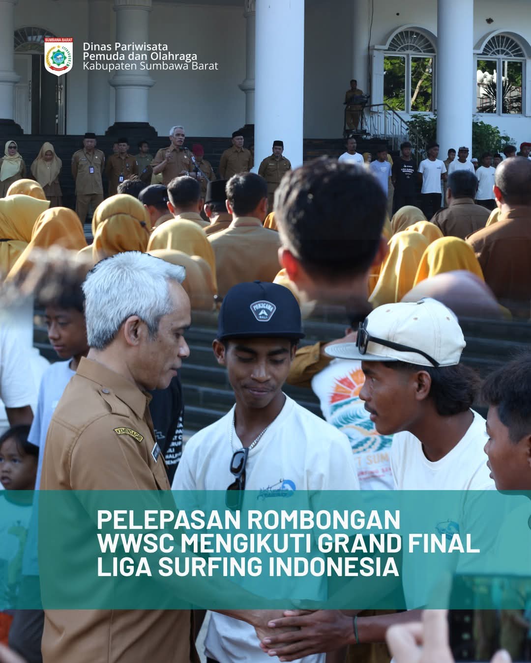 Taliwang KSB, Mediajejakdigital–Sekretaris Daerah Kabupaten Sumbawa Barat, drh. Hairul Jibril, M.M., melepas rombongan West Sumbawa Surfing Club (WSSC) yang akan mengikuti Grand Final Liga Surfing Indonesia (LSI) Tahun 2025 di Pantai Perenan, Provinsi Bali.