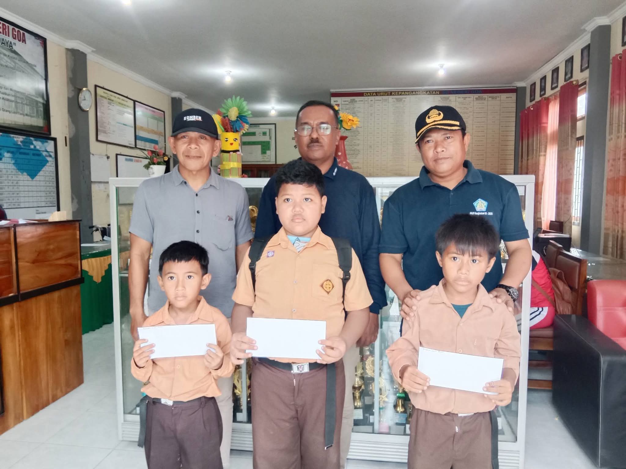 “Penyerahan bantuan kepada siswa-siswi miskin dan berprestasi di SD Negeri Goa tersebut sebagai bentuk dukungan Pemerintah Desa hadir dan sejalan dalam program daerah saat ini, ” terang Kades Arif Rahman Hakim, M.Pd.